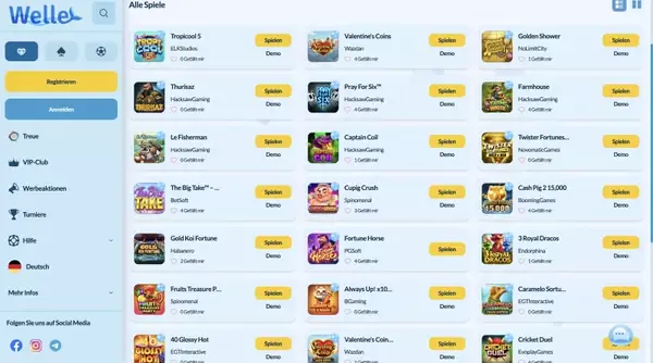 | Loyalitätsprogramm | 7 Stufen, Wellcoins fürs Spielen sammeln | Laufend |
